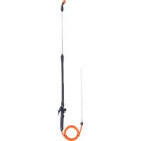 Брандспойт состоит из 2 пластиковых трубок длиной 650 мм и 970 мм, ручки, шланга и распылительного узла на конце. Тип распыления регулируется от струи до мелких брызг.
